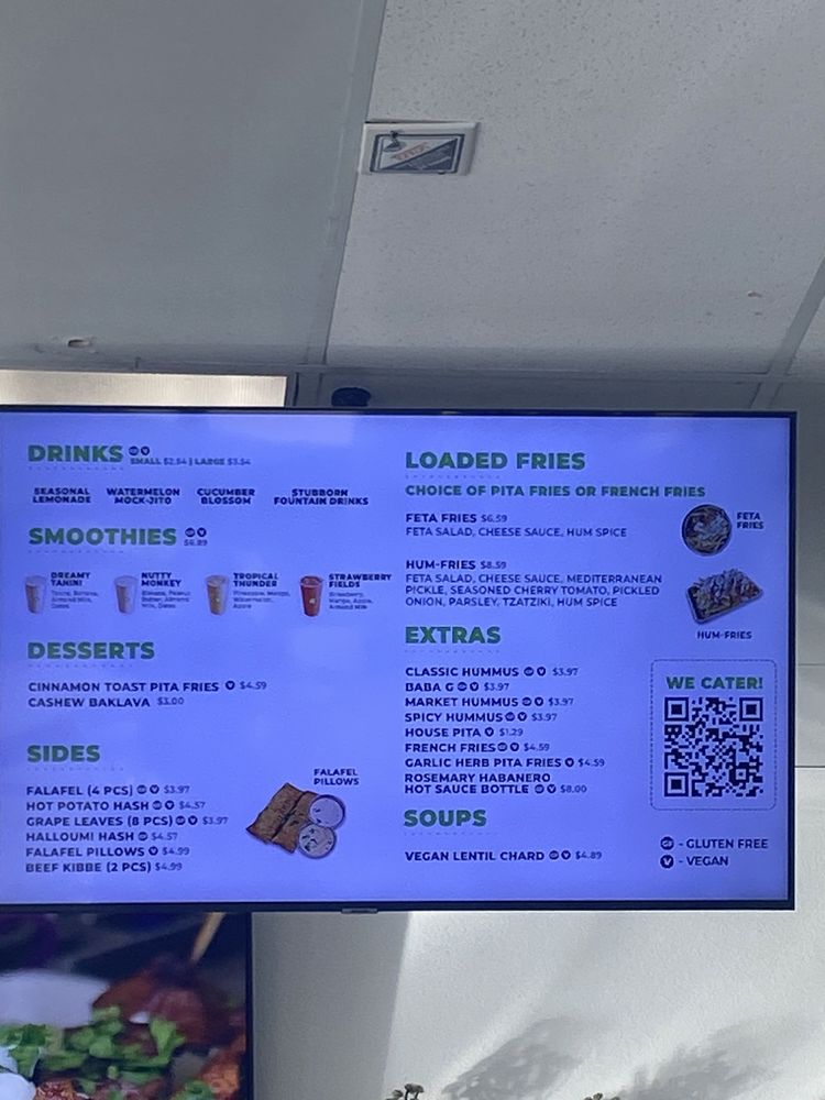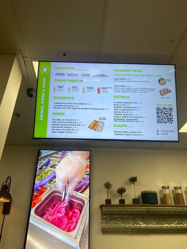 Introducing HUMMUS Bowls & Wraps, a trendy, classy, and casual restaurant in Henderson, NV, offering a unique Mediterranean dining experience. The menu boasts a wide range of options, including customizable hummus bowls and wraps with fresh ingredients and flavorful toppings. Customers rave about the smooth and creamy hummus base, perfect for creating personalized dishes packed with vibrant veggies, olives, feta, and more. Whether you're a vegan, vegetarian, or meat lover, there is something for everyone here. The restaurant's quick service, clean environment, and friendly staff make it a top choice for a delicious and healthy meal. Don't miss out on the opportunity to try their mouthwatering dishes and refreshing sodas, all while enjoying the trendy ambiance and great vibes at HUMMUS Bowls & Wraps.